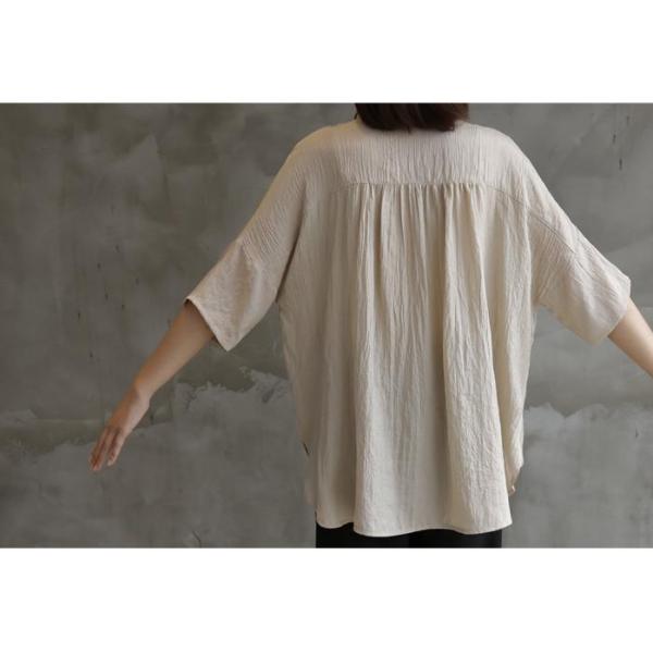 シャツブラウス ルーズフィット ドルマン袖 無地