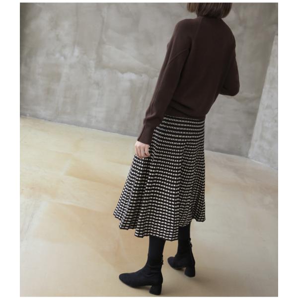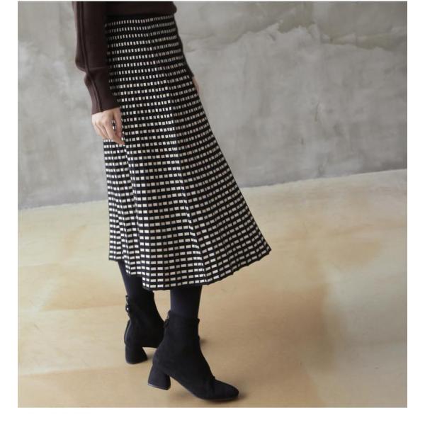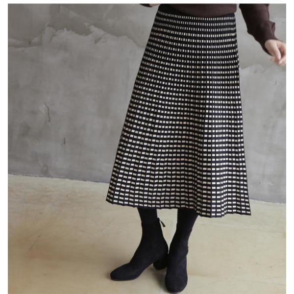 スカート レディース 40代 50代 60代 ファッション おしゃれ 女性 上品 ベージュ ニット ロング スクエアパターン Aライン 秋冬物 ミセス