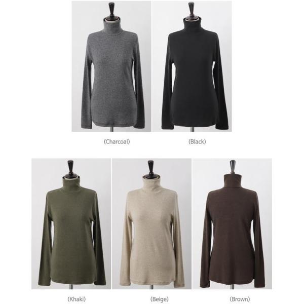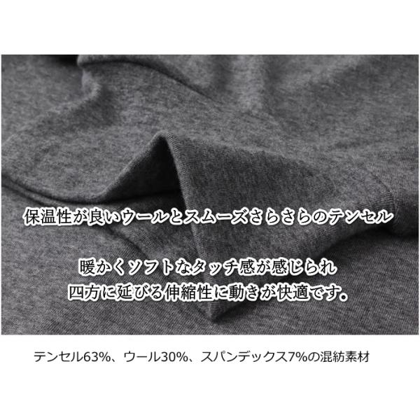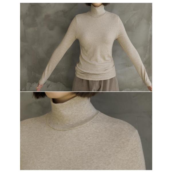 Tシャツ ウール・テンセル混紡 ベーシック タートルネック 長袖 無地