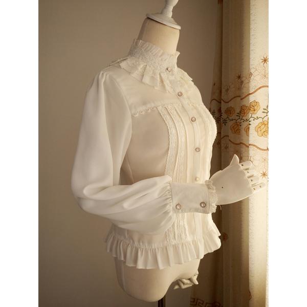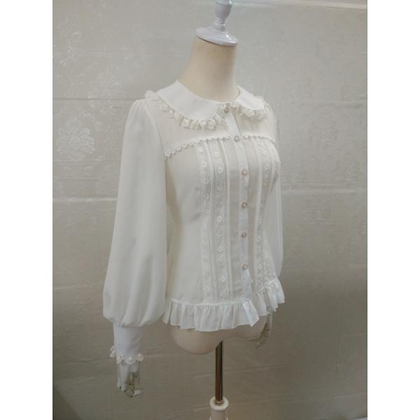 ロリータ ブラウス 長袖 レディース 春夏 ロリィタ レース フリル ホワイト ブラック XS-2XL ガーリー