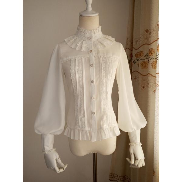 ロリータ ブラウス 長袖 レディース 春夏 ロリィタ レース フリル ホワイト ブラック XS-2XL ガーリー