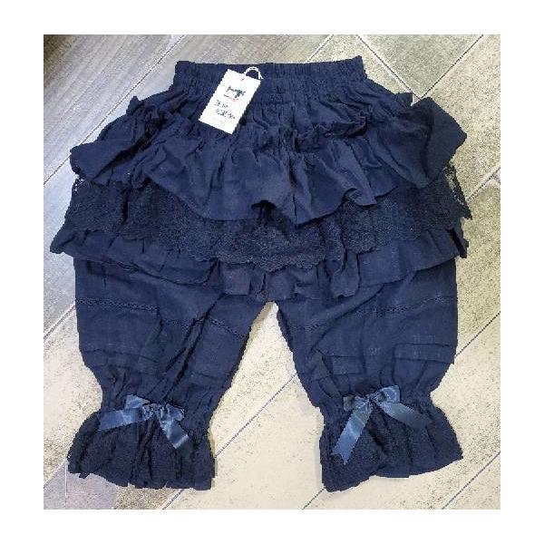 即納 ロリータ ドロワーズ 春夏 二段フリル かぼちゃパンツ 刺繍 リボン付き