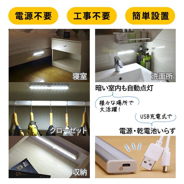 センサーライト 人感 LED 充電式 玄関 室内 廊下 クローゼット ライト 防災グッズ