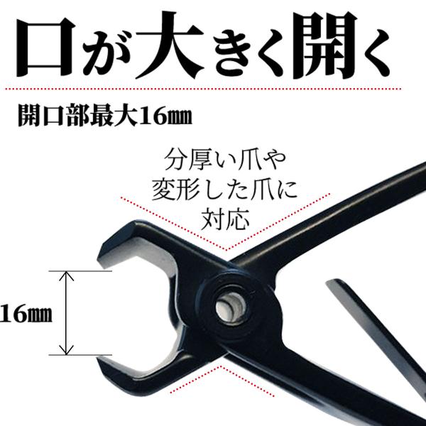 ・大きく口が開く、開口部16mmで、分厚い爪もしっかりカット
