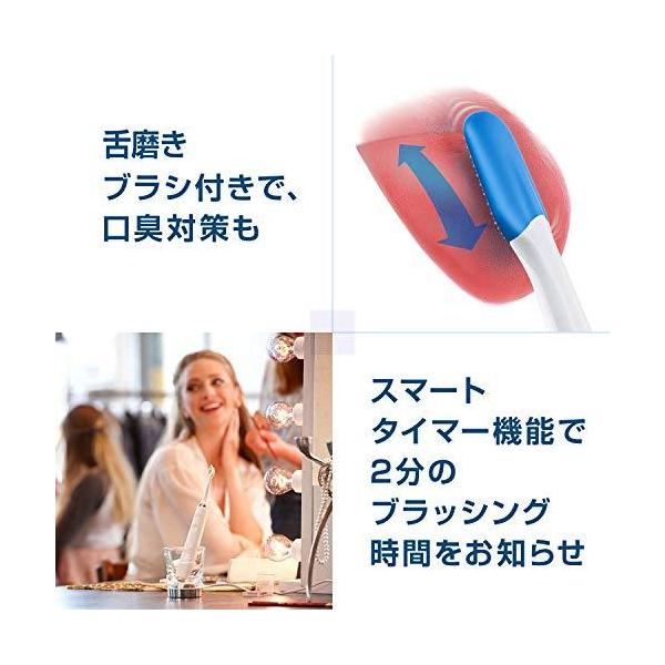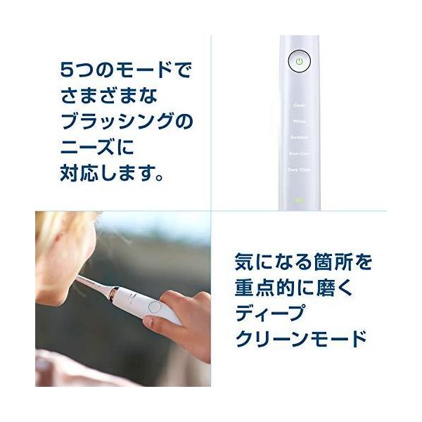 「商品情報」●5つのブラッシングモード(クリーン/ホワイト/センシティブ/ガムケアー/ディープクリーン)。 ●歯垢除去力、手磨きの最大10倍:今までのブラシに比べ、歯に触れる表面積が約4倍のプレミアムクリーンヘッド。歯と歯ぐきにフィットし、歯垢をかき出します。 ●約1週間で自然な白い歯へ:音波水流の強力な洗浄力で、コーヒーやタバコなどによるステイン(着色汚れ)を減少させ、歯本来の自然な白さに。 ●充電器用グラ ...「主な仕様」サイズ:幅2.8×奥行3.1×高さ25.6cm