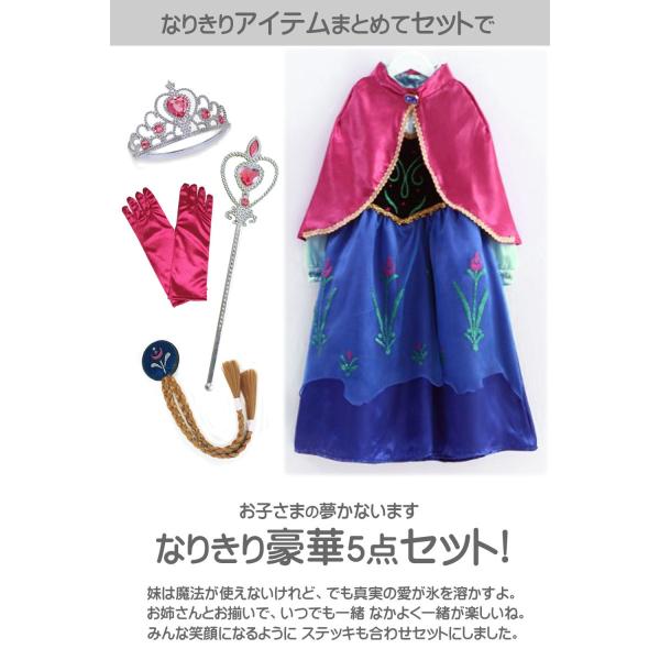 アナ雪 プリンセス ドレス 子供 コスプレ 仮装 衣装 なりきりセット 妹 キッズ 女の子 ワンピース アクセサリー 手袋 5点セット クリスマス おもちゃ