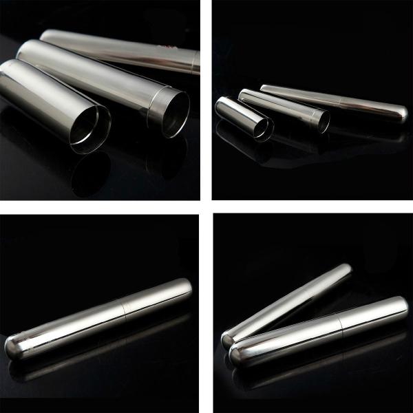 シガーチューブ 葉巻 メタル シガーケース 1本 シガーカッター 2種 喫煙具 葉巻ケース タバコケース 筒形 ステンレス チューブ ギロチン パンチ カッター