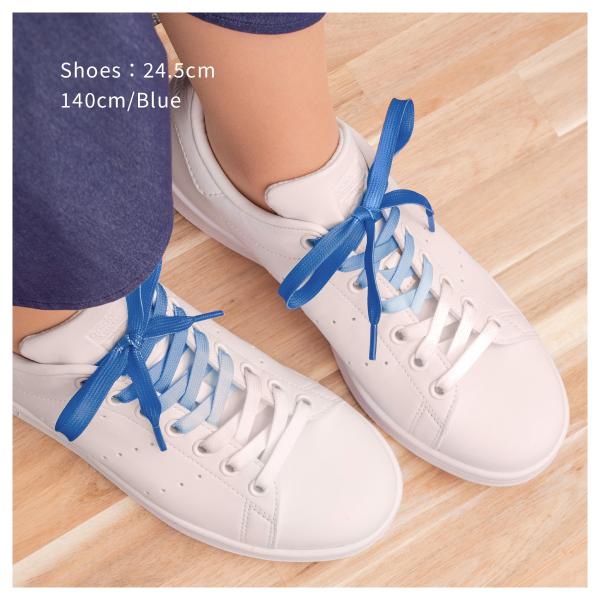 靴の雰囲気をガラッと変えるグラデーションカラー靴紐。定番のスニーカーも、靴ひもの色や結び方でアレンジを加えれば、あなただけの個性的な靴に生まれ変わります。95cm/120cm/140cmの3つの長さをご用意しておりますので、ローカットからハイカットまで幅広いタイプの靴に対応します。