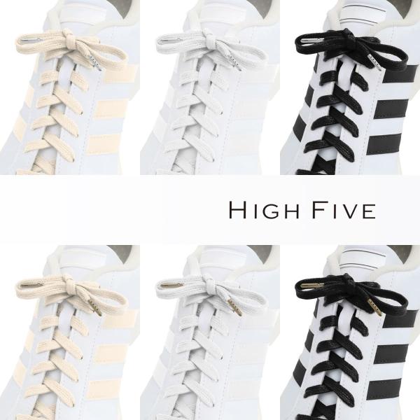 靴ひも 平紐 ワックス 金属チップ コットン シューレース 120cm 140cm 160cm スニーカー ローカット ハイカット 2本セット 1足分 HIGH FIVE ブランド