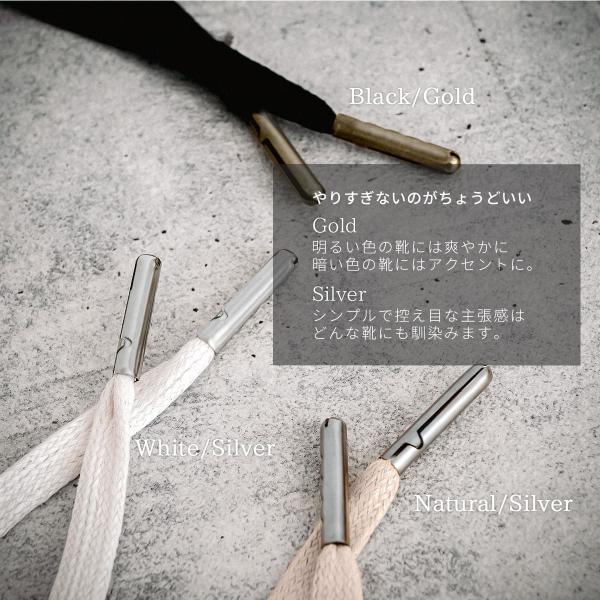 くつひも シューレース 平ひも 蝋引き メタルチップ 綿 白 黒