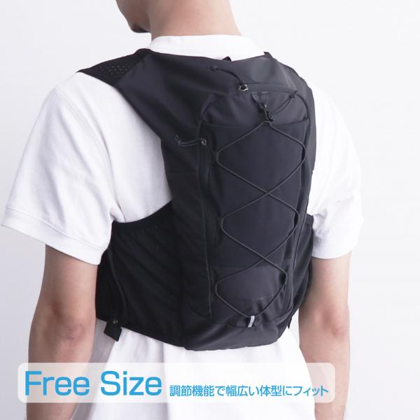 ティゴラ 陸上/ランニング バッグ ベスト 8L ペットボトル収納 サイズ調整 フリー ランニングベスト フリーサイズ ブラック TIGORA