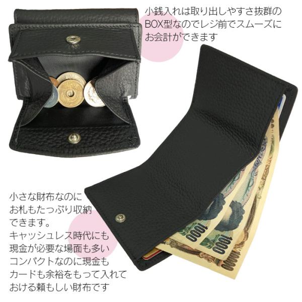 小さい財布 三つ折り牛革ミニ財布 お札折らない財布 お札を折らずに入れられる財布 本革 コンパクト レディース 小銭入れ お札が折れない センスのいい財布