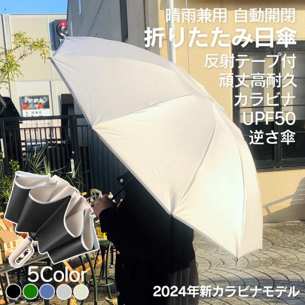 日傘 晴雨兼用 折りたたみ 傘 自動開閉 レギュラー 折り畳み カラビナ ジャンプ傘 10本骨 UPF50 逆折り メンズ 男性向け ワンタッチ 頑丈 高耐久 完全遮光