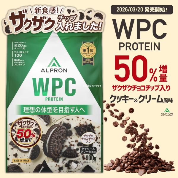 【新発売】プロテイン ホエイ 900g アルプロン ザクザクチョコチップ50%増量 クッキー&クリームチップ【送料無料】 WPC ダイエット 男性 女性
