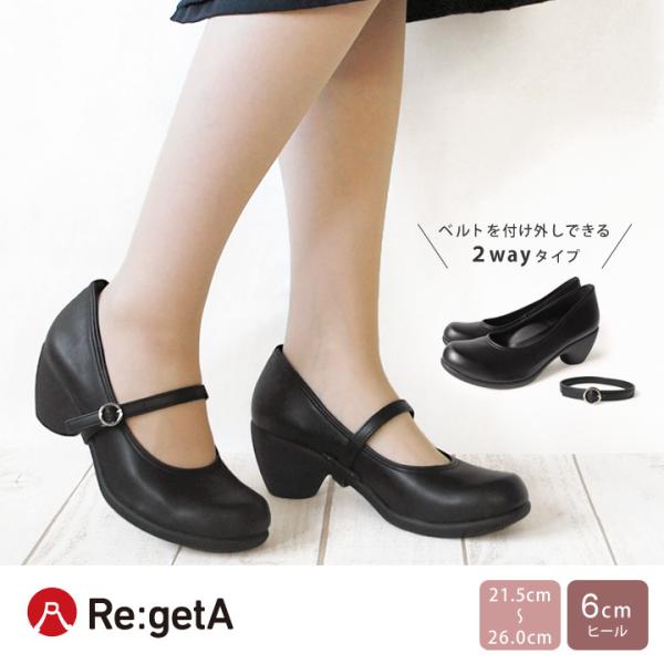 Re:getA R-1805 ベルト付き2wayプレーンパンプス 入学式 卒業式 就活 履きやすい 歩きやすい 新生活 母の日