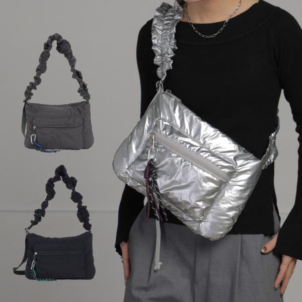 2WAY ショルダーバッグ レディース 男女兼用 ショルダー バッグ ギャザー くしゅくしゅ パフ パフィー 軽量 コード チャーム カラビナ