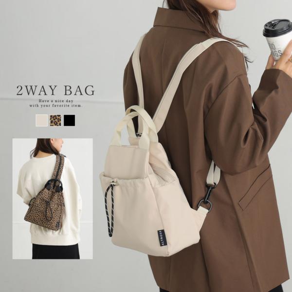 リュック リュックサック ミニリュック ミニ 2層 アニマル ヒョウ柄 レオパード ナイロン カジュアル ボディバッグ 2way フォックス