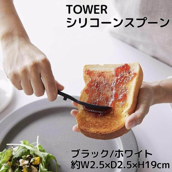 シリコーンスプーン W2.5×D2.5×H19cm タワー TOWER ジャムスプーン 山崎実業 yamazaki スプーン おしゃれ ジャム用スプーン 置ける かき取る 塗る ジャム パン