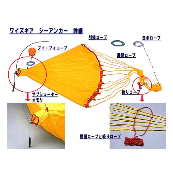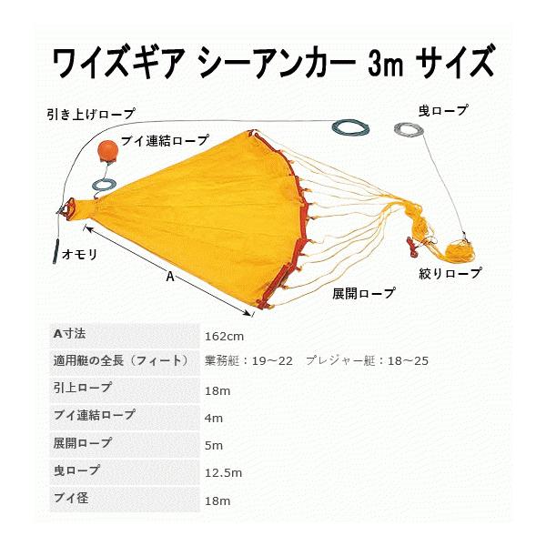 ワイズギア シーアンカー 3m 適合艇長18〜25フィート ヤマハ パラシュートアンカー パラアンカー 一式セット 単品配送 QR2-SAS-Y16-002