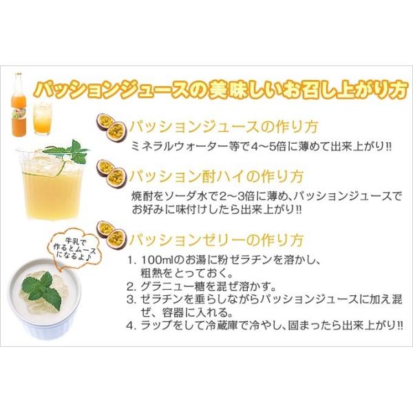 トロピカルフルーツの女王パッションジュース(濃縮還元)、濃縮だからジュースはもちろん、焼酎で割っておいしく飲めるパッションジュース
