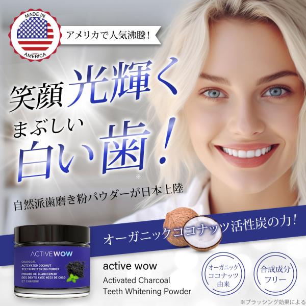 アクティブワオ Active Wow 活性炭 歯磨き粉 ホワイトニング チャコールパウダー 20g オリジナル/ナチュラル 歯 ホワイトニング 歯のホワイトニング ホワイトニングパウダー Activated Charcoal Teeth Whitening Powder