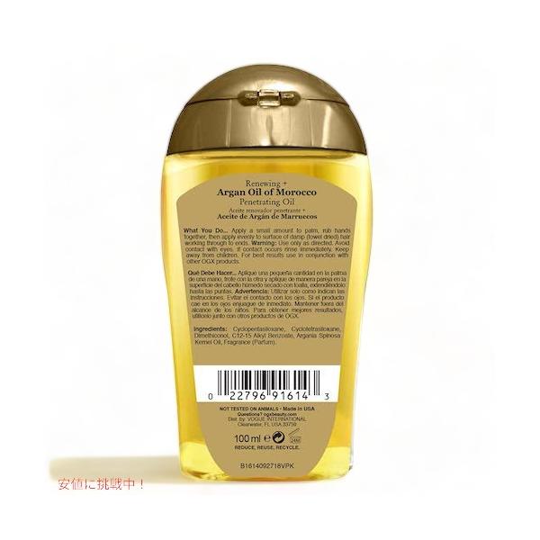 【並行輸入品】3個セット OGX ARGAN OIL OF MOROCCO PENETRATING OIL 3.3oz オージーエックス モロッコ アルガンオイル ヘアオイル 100ml