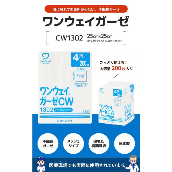 ガーゼ ワンウェイガーゼCW1302 200枚入 アメジスト 大衛 不織布ガーゼ ガーゼ 医療用