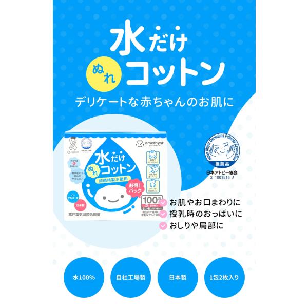 水100% パラベンフリー ノンアルコール 個包装 メーカー直販 ベビーコットン 水だけコットン 水コットン ぬれコットン 高品質 大衛株式会社