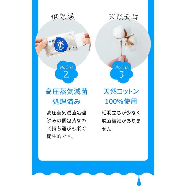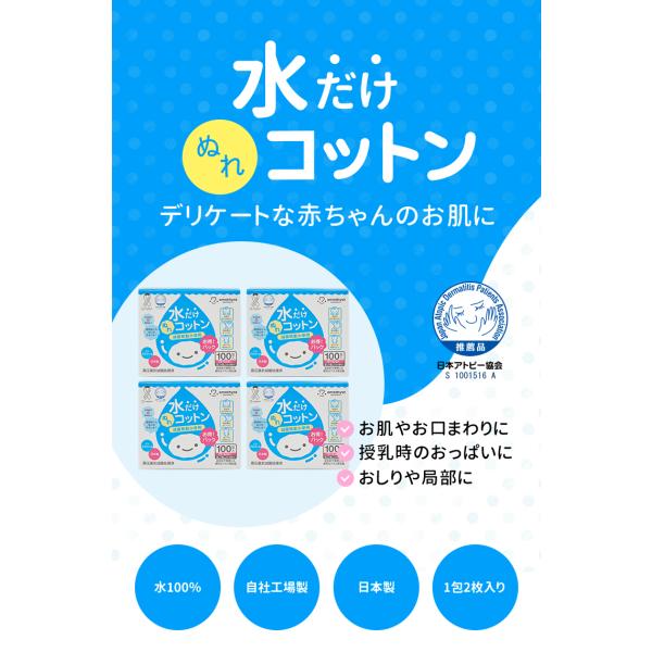 水100% パラベンフリー ノンアルコール 個包装 メーカー直販 ベビーコットン 水だけコットン 水コットン ぬれコットン 大衛株式会社