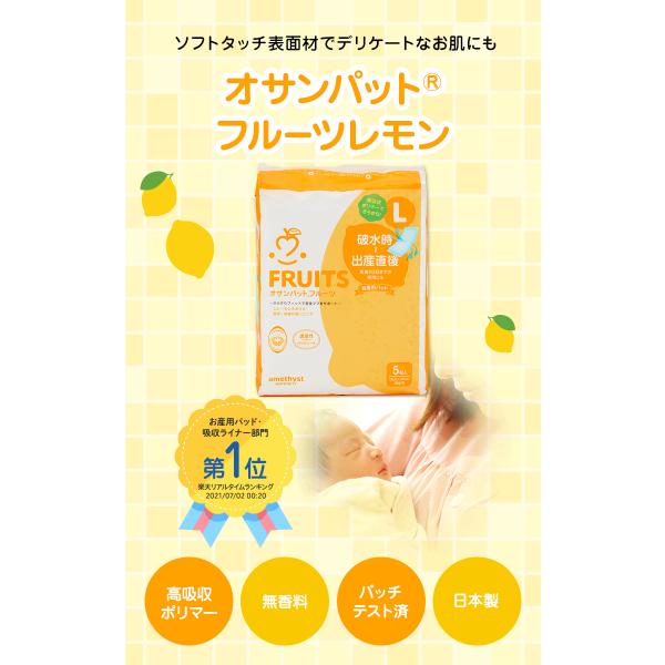 お産パッド お産用パッド お産パット 産褥パッド オサンパットフルーツ レモン 5個入 (Lサイズ) アメジスト 大衛