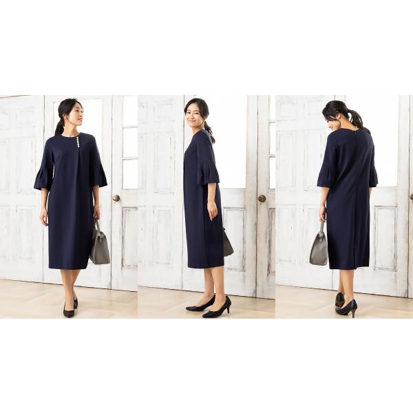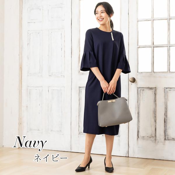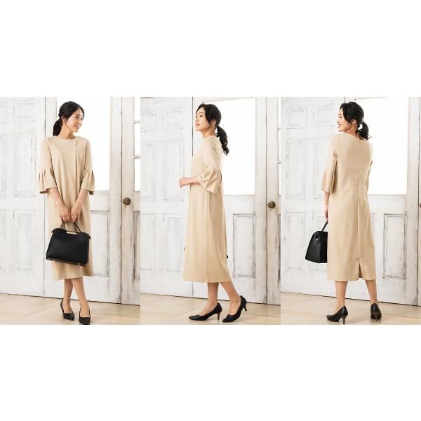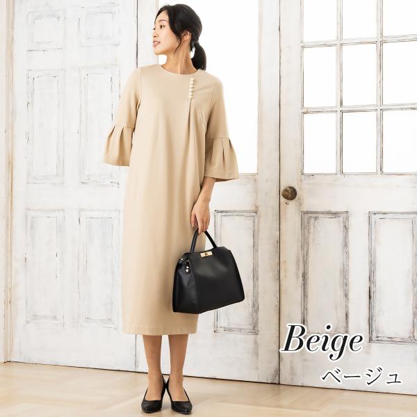 商品名:パール付きワンピース ワンピース レディース きれいめ 40代 50代 秋冬 ロング 六分袖 秋服 ストレッチ フォーマル セレモニー