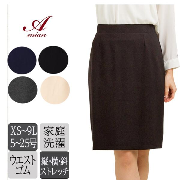 レディーススーツ 事務服 スカート ウエストゴム タイト オフィススカート タイトスカート シワになりにくい ひざ丈 黒 洗える 長め ウオッシャブル ブラック ストレッチ セール レディース 単品 通勤 膝丈 お仕事 制服 ボトムス 大きいサイズ 小さいサイズ リクルートスーツ ビジネススーツ 通勤 お仕事 就職活動 就活