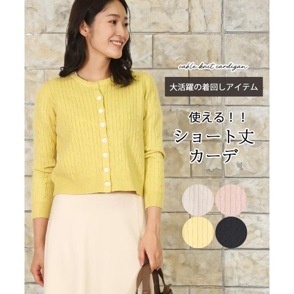 カーディガン レディース 秋 冬 黒 ショート丈 ケーブルニット 可愛い 40代