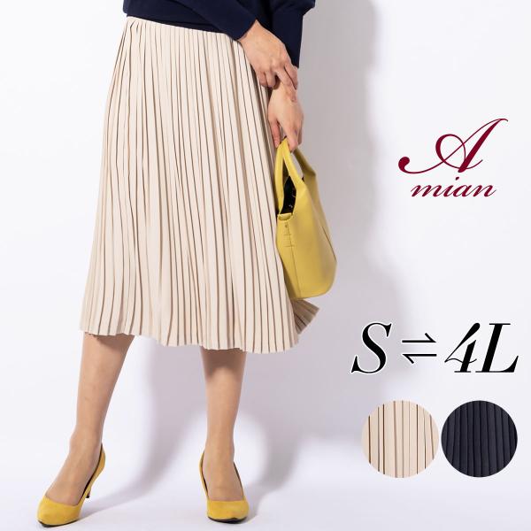 プリーツスカート 膝丈 黒 コーデ 40代 50代 オフィス ひざ丈スカート フォーマル ベージュ ゴム