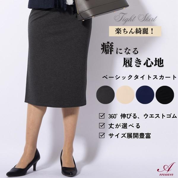 事務服 スカート ウエストゴム タイト オフィススカート タイトスカート ひざ丈スカート シワになりにくい 黒 ウオッシャブル ブラック ストレッチ