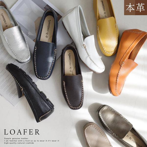 ローファードライビングシューズ 柔らか本革 シンプル 本革 SlV 3センチヒールamiamiアミアミ