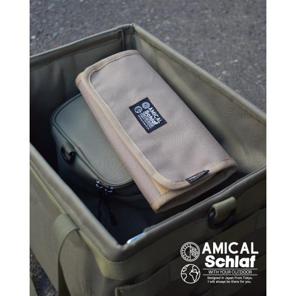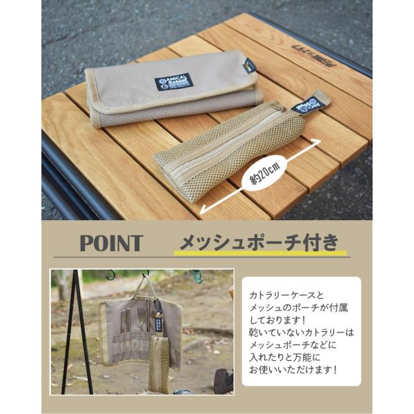 ロールカトラリーケース メッシュポーチ付き アウトドア キャンプ 登山 キャンプ用品 収納 ファミリーキャンプ プレゼント ギフトAMICAL.Schlaf (アミカル&シュラフ)