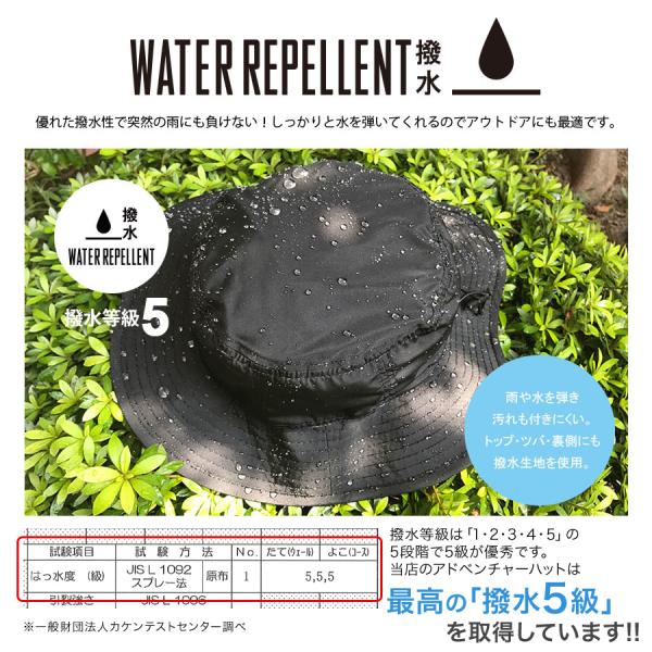 抗菌撥水アドベンチャーハット サファリハット 帽子 紫外線99.9%カット メンズ レディース キッズ アウトドア キャンプ はっ水 ハット UPF50+ レインハット 登山 花粉対策 ウイルス対策 UV 撥水加工 生地 レインハット