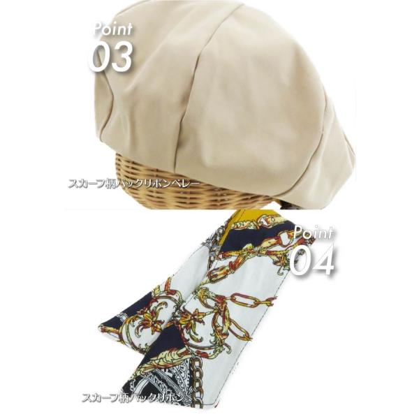 ベレー帽 帽子 レディース 春夏 UVカット 紫外線対策 小顔効果 スカーフ柄バックリボンベレー VS12-021