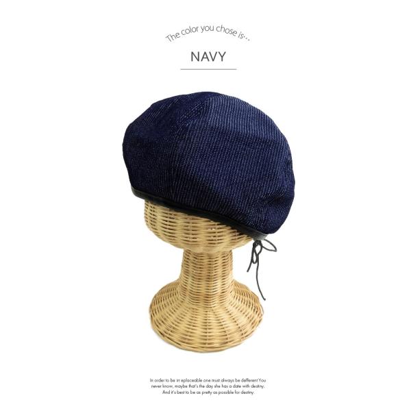 ベレー帽 帽子 レディース 春夏 UVカット 紫外線対策 小顔効果 ストライプデニムベレー VS12-025