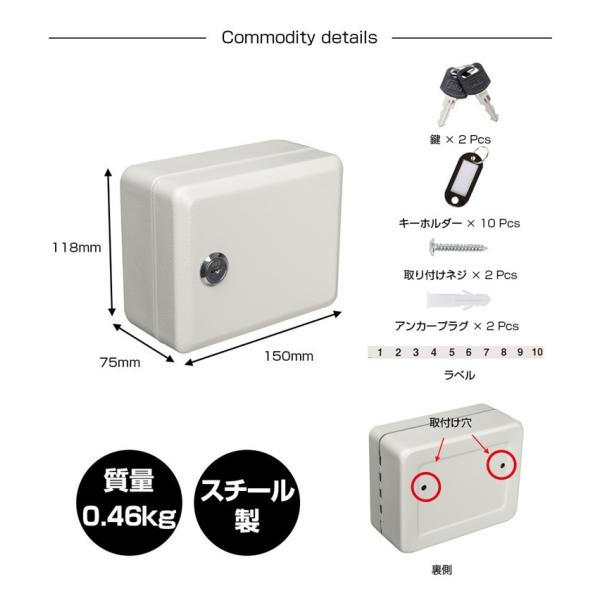 キーボックス 9個収容 キーケース 小型 壁掛け 壁付け 鍵付き 鍵管理 オフィス 家庭 専用キーホルダー付き インテリア オシャレ ホワイト 白 屋外 小型