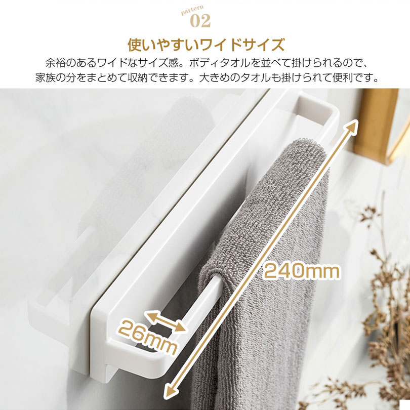 【3個セット】マグネット バスタオルハンガー 約W24×D4×H5cm マグネット収納 強力マグネット 浴室収納 タオル掛け タオルハンガー ホワイト