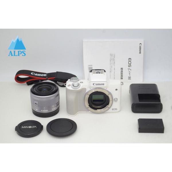 美品 Canon キヤノン EOS Kiss M + EF-M 15-45mm IS STM レンズキット ミラーレス一眼カメラ ホワイト 251129q【アルプスカメラ】