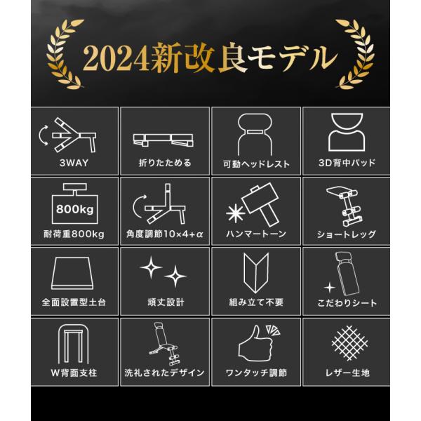 2024年最新モデル トレーニングベンチ 段階調節 耐荷重800kg インクラインベンチ フラットベンチ ダンベル トレーニングベンチプレスホームジム