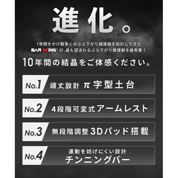 ぶら下がり健康器 π字 土台フレーム ぶら下がり健康機 BARWING 高さ調整11段階 3Dパット搭載 懸垂 懸垂バー 筋トレ器具 懸垂マシン