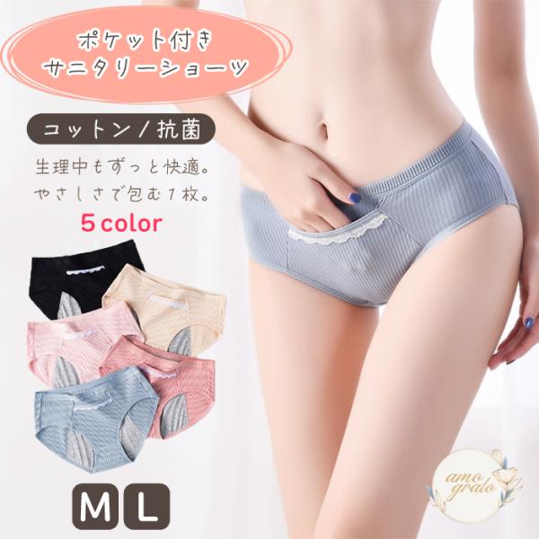 サニタリーショーツ 夜用 多い日 サニタリーパンツ ナイト用 生理用ショーツ 生理中 吸水ショーツ 生理ショーツ ポケット付きパンティー ポッケ
