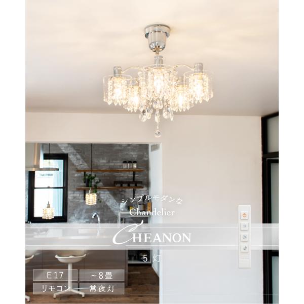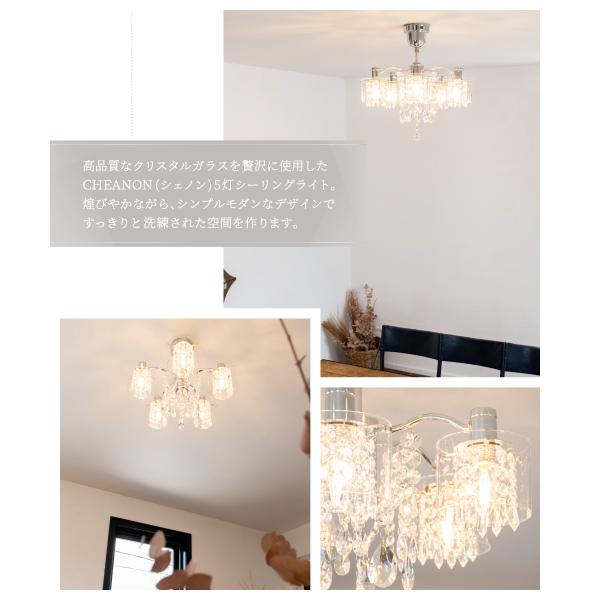 高品質なクリスタルガラスを贅沢に使用した CHEANON(シェノン) 5灯シャンデリア。