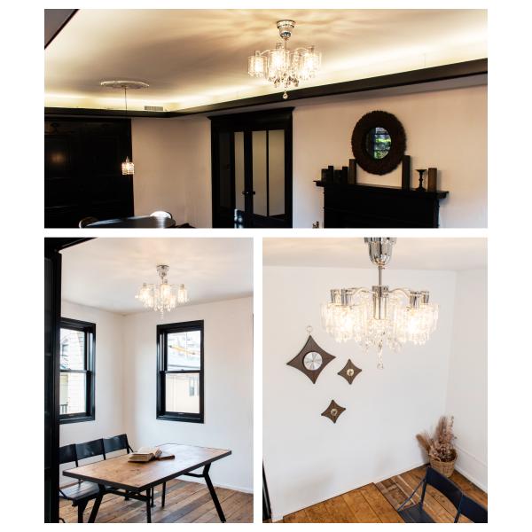 Ampoule公式 シャンデリア リビング ダイニング 照明 シーリングライト おしゃれ 5灯 クリスタル ガラス 寝室 高級 ラグジュアリー 照明器具 天井 8畳 シェノン