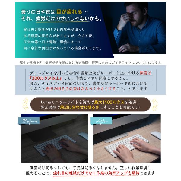 PC作業による疲れ目が気になる方へ モニターライト Luma(ルマ)。