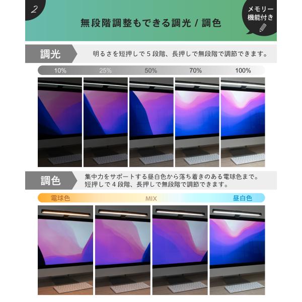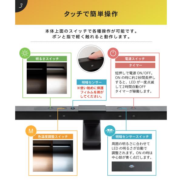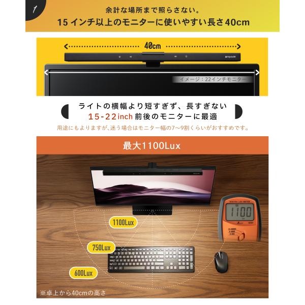 Ampoule公式 モニターライト LED ライト タッチ式 スクリーンバー 40cm 1100Lux ディスプレイ モニター 自動調光 調光 調色 無段階 高演色性 パソコン ルマ